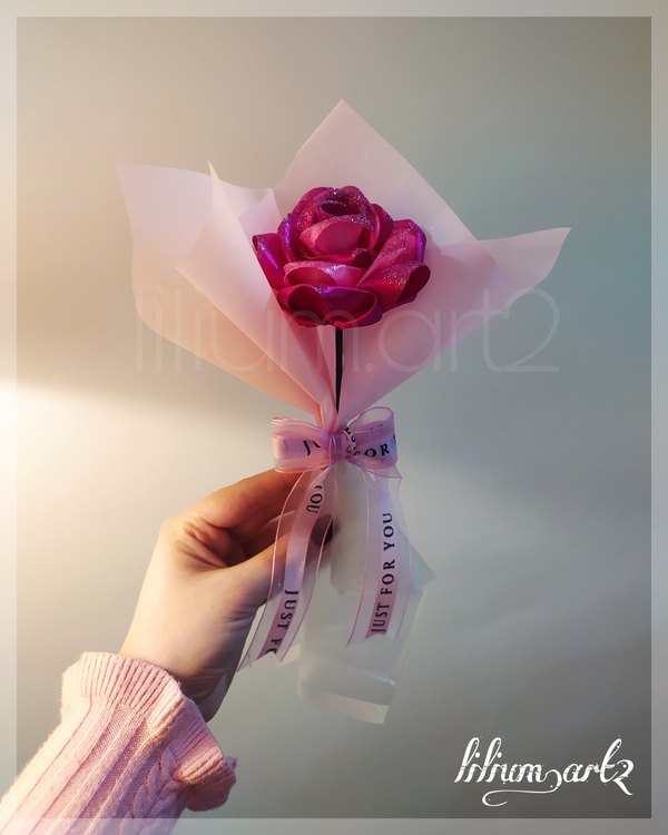 شاخه گل رز جاودان روبانی مینی دسته گل