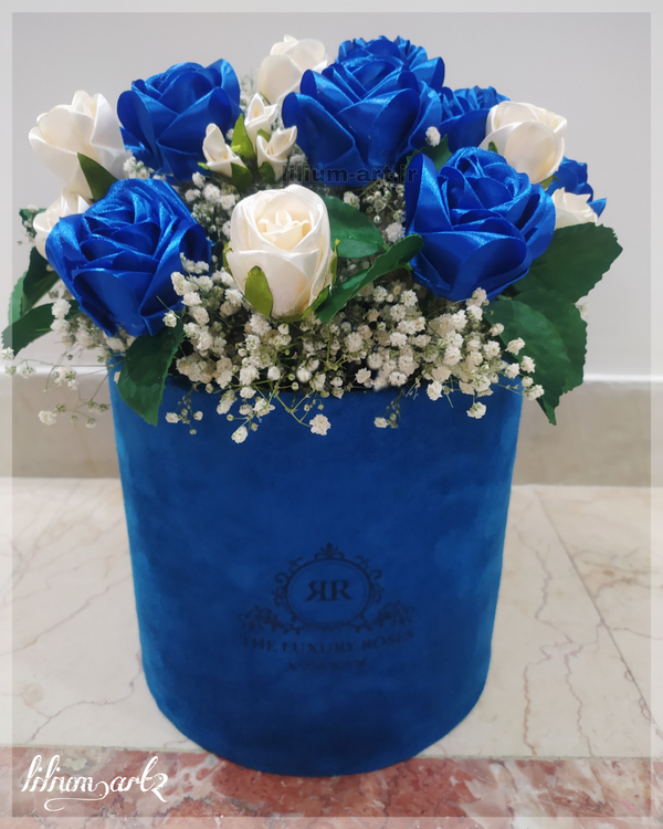 ۲۸ شاخه رز روبانی vip آبی سرمه ای و شیری زیبا مناسب برای هدیه و کادو