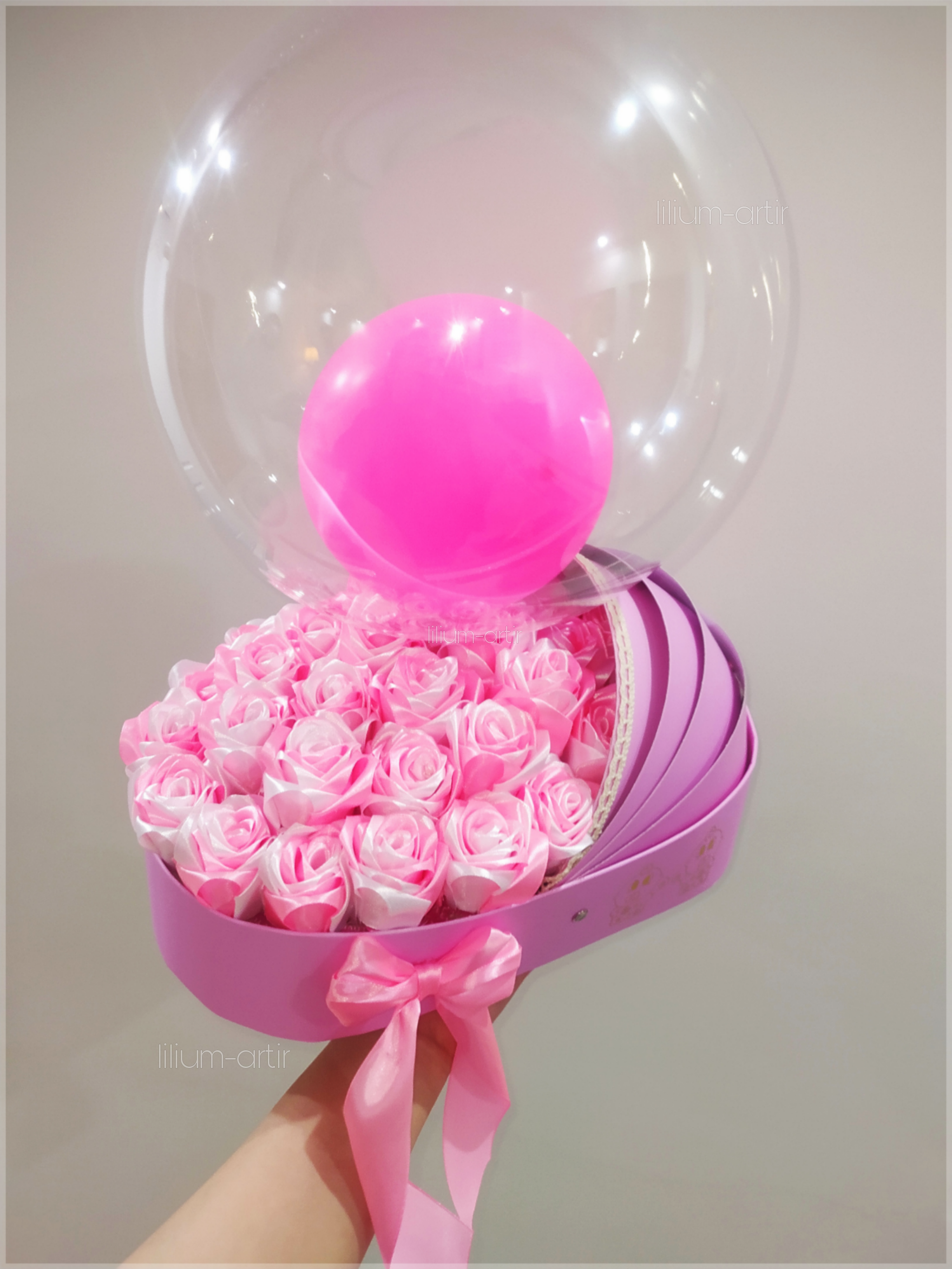 ۳۰ عدد گل رز روبانی داخل گهواره سایز متوسط
